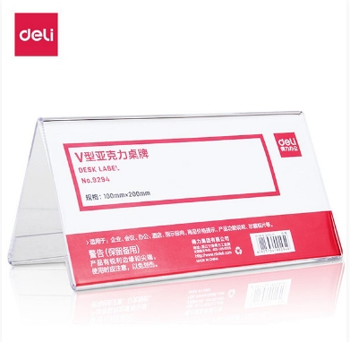 商品名称:得力 v型亚克力 桌牌 9294 100*200mm 商品编号:229600 品牌:得力 上架时间:2025-10-14 商品毛重:0克