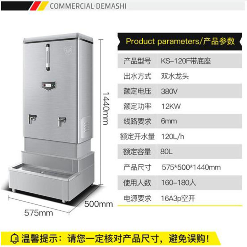 商品名称:德玛仕(DEMASHI)商用开水器 不锈钢电热饮水机烧热水炉 KS-120F 380V(发泡保温款 带底座) 商品编号:229677 品牌:德玛仕 上架时间:2025-10-15 商品毛重:0克