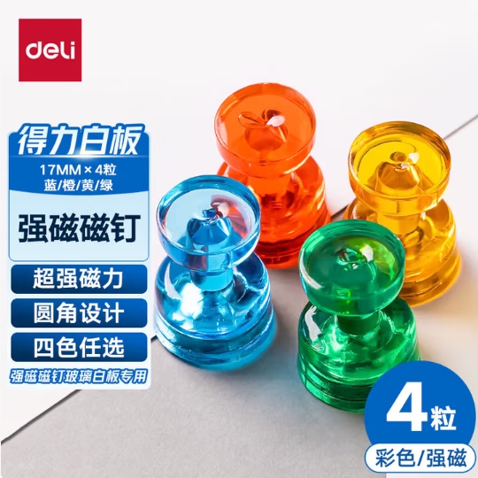 商品名称:得力(deli)磁钉【4粒】17mm彩色强磁磁钉 7821 商品编号:229782 品牌:得力 上架时间:2025-10-20 商品毛重:0克