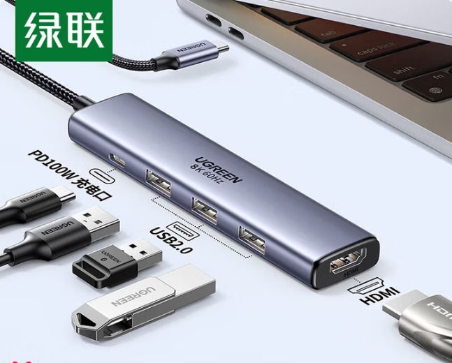 商品名称:绿联Type-C扩展坞转HDMI扩展坞 5合1【8K60Hz+USB*3】快充 商品编号:229851 品牌:绿联 上架时间:2025-10-24 商品毛重:0克