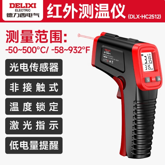 商品名称:德力西 电气测温枪【-50~500°C】单点/背光/黑白屏