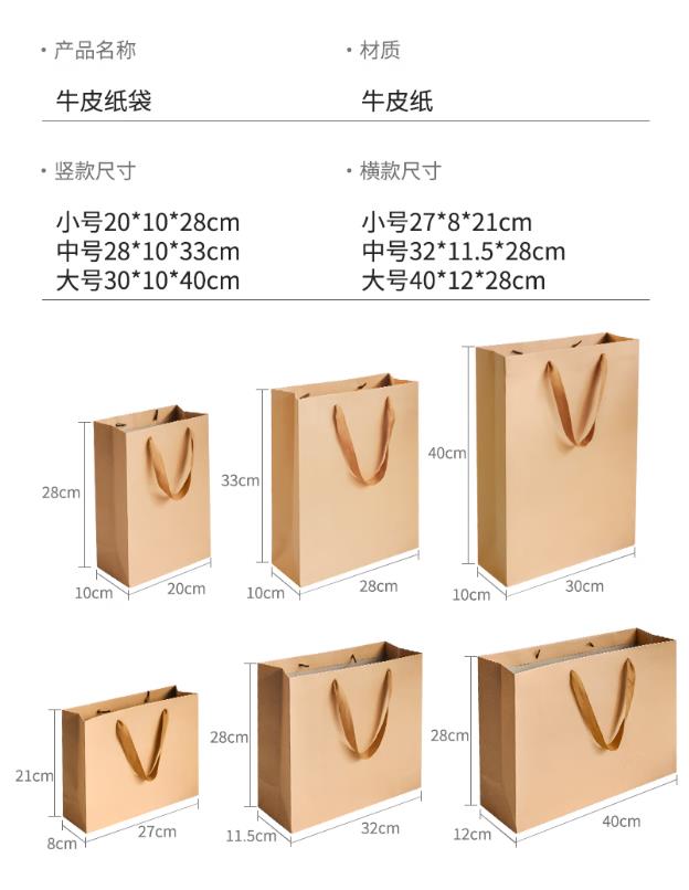 商品名称:加厚牛皮纸袋 竖款大号10个装 30*10*40cm 商品编号:230351 品牌:创新 上架时间:2025-11-14 商品毛重:0克