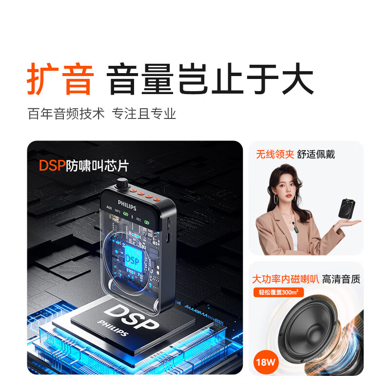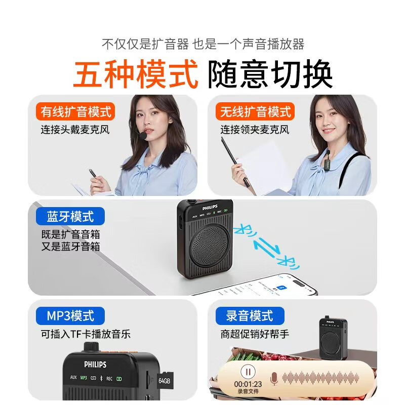 商品名称:飞利浦(PHILIPS)领夹小蜜蜂扩音器麦克风DLM3551CB 商品编号:230415 品牌:飞利浦 上架时间:2025-11-19 商品毛重:0克