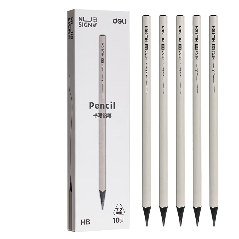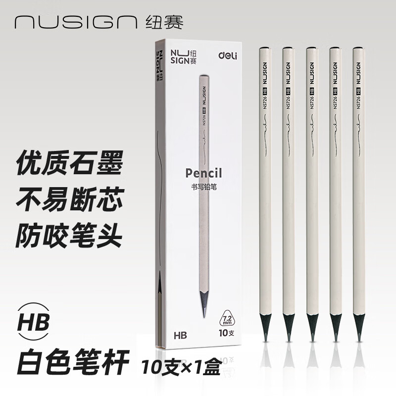 商品名称:纽赛(NUSIGN)白色黑木石墨铅笔高档三角笔杆10支NS726-HB