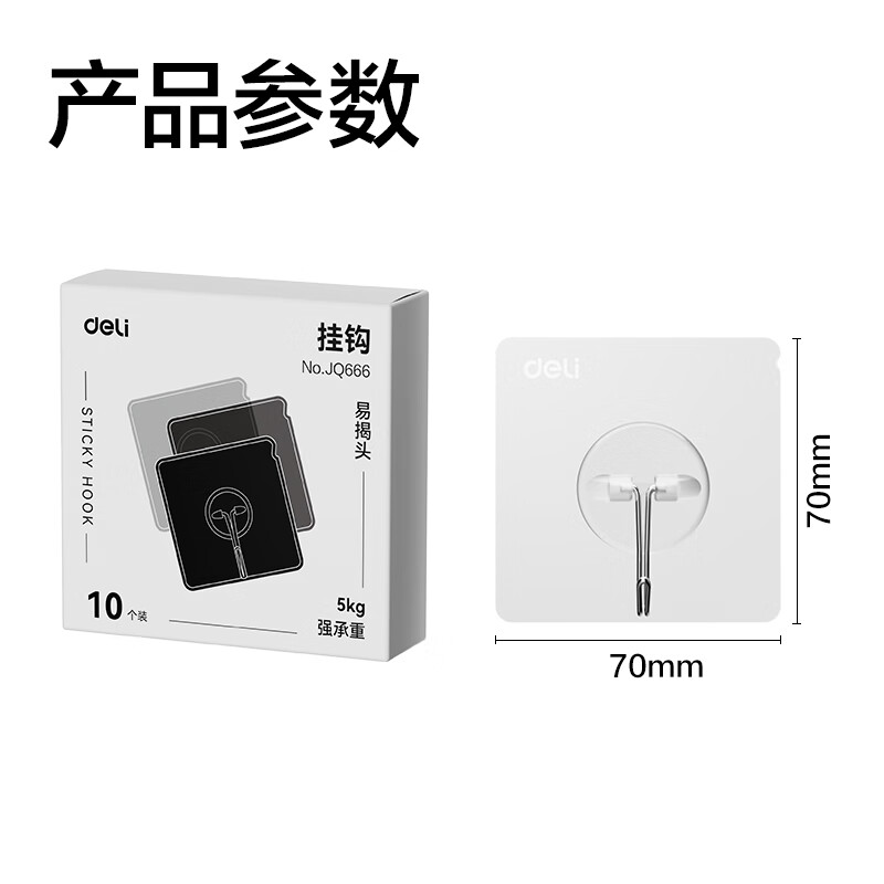 商品名称:得力(deli)无痕透明厨房浴室免打孔无痕胶双面胶挂钩 10个/盒 JQ666