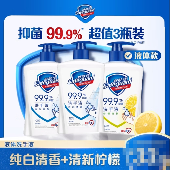 商品名称:舒肤佳 抑菌洗手液 420g*3瓶(纯白*2+柠檬)健康抑菌99.9% 商品编号:230609 品牌:舒肤佳 上架时间:2025-11-28 商品毛重:0克