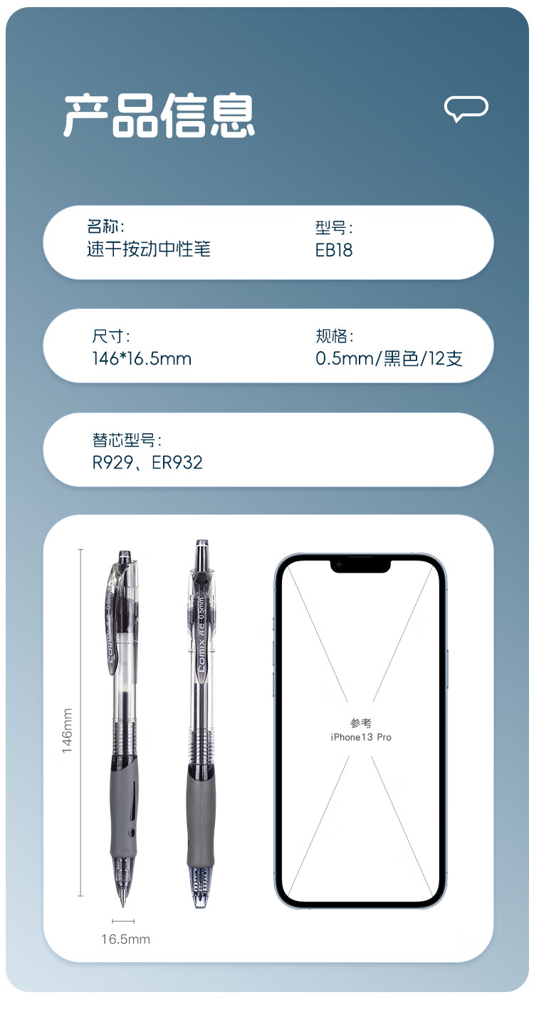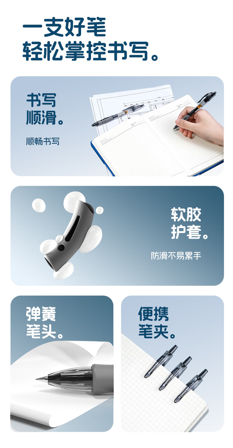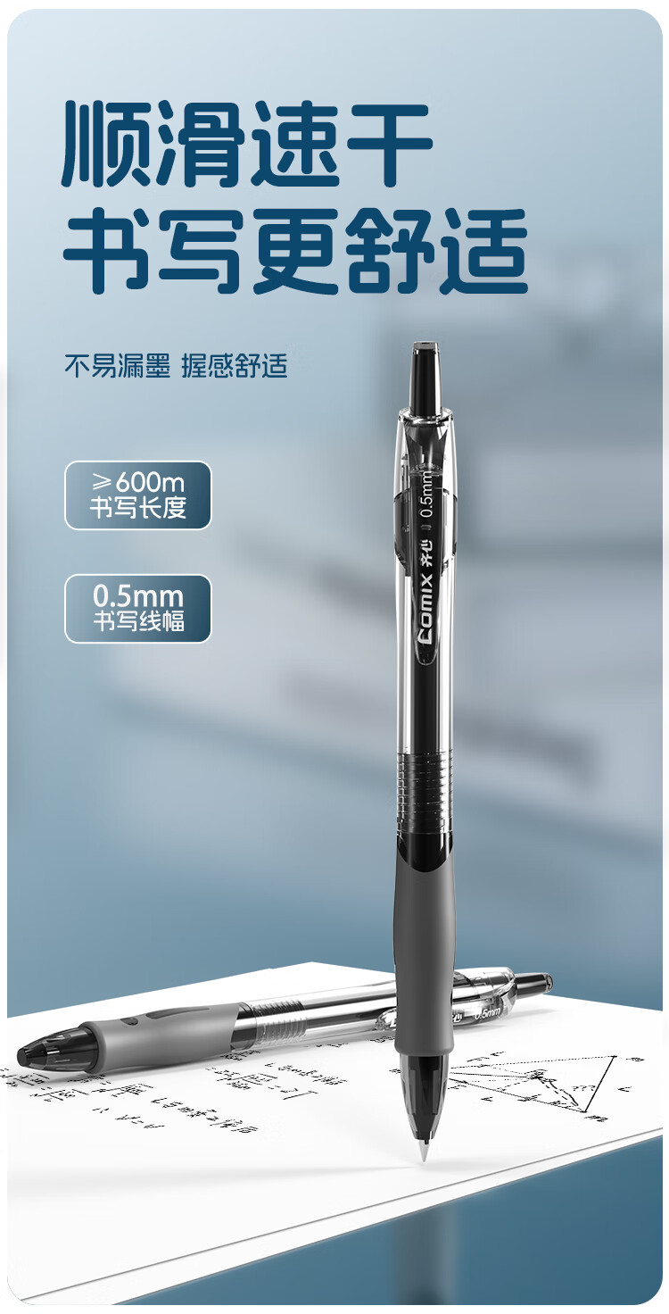 商品名称:齐心(Comix)顺滑速干中性笔按动签字笔水笔办公文具 0.5mm子弹头 黑色 12支装 EB18 商品编号:230630 品牌:齐心 上架时间:2025-12-01 商品毛重:0克