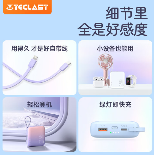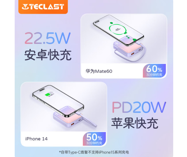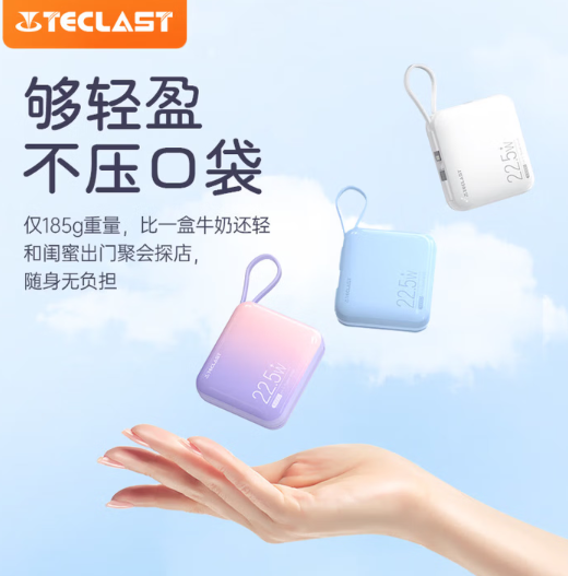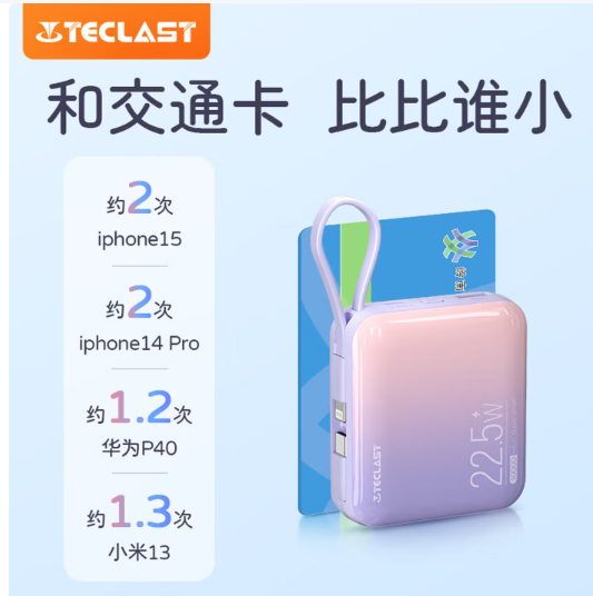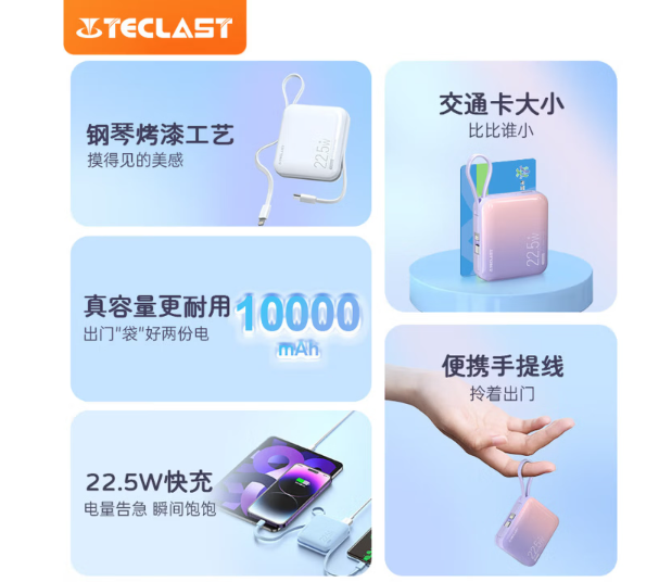 商品名称:台电迷你移动电源自带线10000毫安22.5W快充 M10 PRO-P-紫色 商品编号:230685 品牌:台电 上架时间:2025-12-02 商品毛重:0克