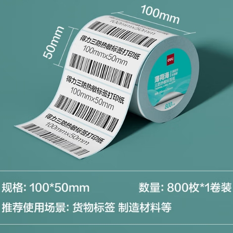 商品名称:得力(deli)热敏标签纸 100*50mm 800张*1卷 商品编号:230707 品牌:得力 上架时间:2025-12-02 商品毛重:0克