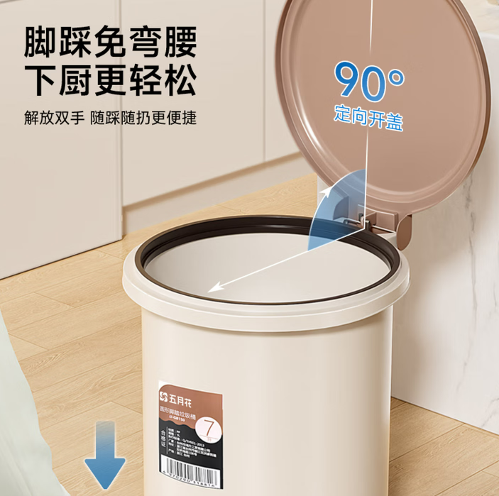 商品名称:五月花垃圾桶脚踏式脚踩翻盖7L厨房垃圾桶带盖家用客厅卫生间卧室厕所 商品编号:230727 品牌:五月花 上架时间:2025-12-02 商品毛重:0克