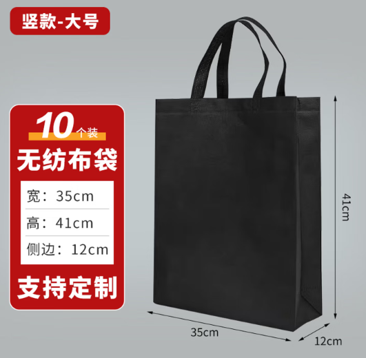 商品名称:无纺布袋子加厚购物环保袋包装袋手提袋大号竖款高41*宽35*侧12cm 1个装黑色