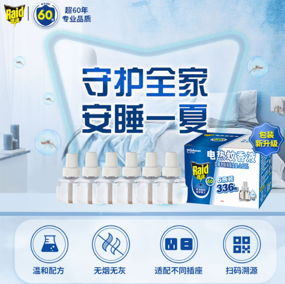 商品名称:雷达(Raid) 336晚6瓶装替换装 无加热器 无香型 驱蚊器