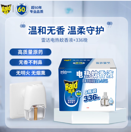 雷达(Raid) 336晚6瓶装替换装 无加热器 无香型 驱蚊器