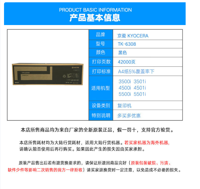 商品名称:京瓷(KYOCERA)TK-6308粉盒
