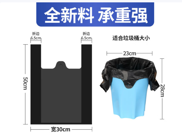 商品名称:背心式垃圾袋加厚手提黑色小号特厚马夹塑料袋大号一次性 黑宽30*50cm50只厚2.5丝全新料 商品编号:230873 品牌:创新 上架时间:2025-12-08 商品毛重:0克
