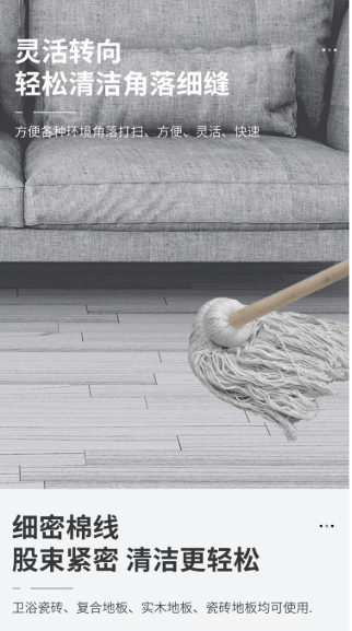 商品名称:鸣固 木杆拖把棉线大堂老式墩布尘推拖布工厂物业吸水拖把ZJ3438 KW389163