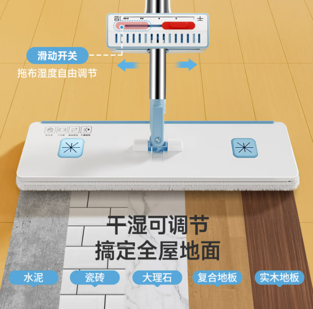美丽雅平板拖把42cm2布干湿可调吸水家用一拖净免手洗懒人拖地布