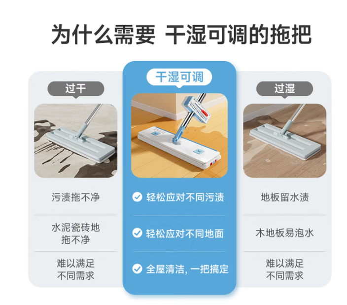 商品名称:美丽雅平板拖把42cm2布干湿可调吸水家用一拖净免手洗懒人拖地布