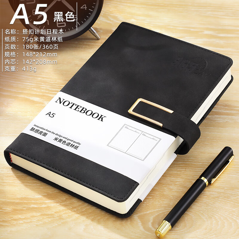 商品名称:朗捷2026年日程本每日计划本国潮风效率手册一天一页日记本加厚日历记事本年历本 黑色搭扣2026年