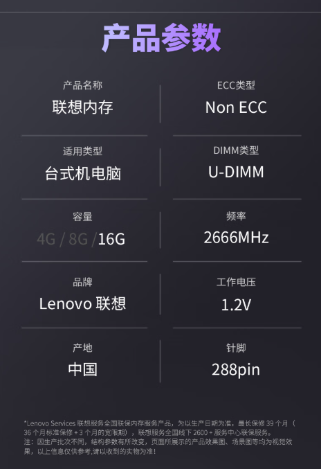 商品名称:联想(Lenovo)16G DDR4 2666 台式机内存条