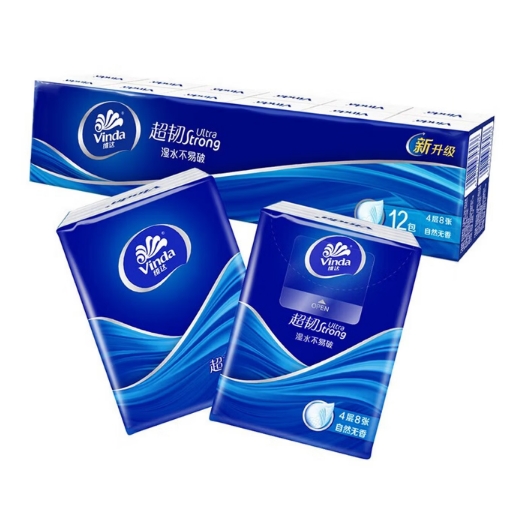 商品名称:维达(vinda)手帕纸 超韧4层8张湿水不易破 纸巾加厚小包卫生纸 一件V0036