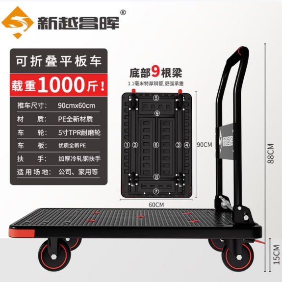 商品名称:新越昌晖 折叠平板手推车60*90cm 承重1000斤