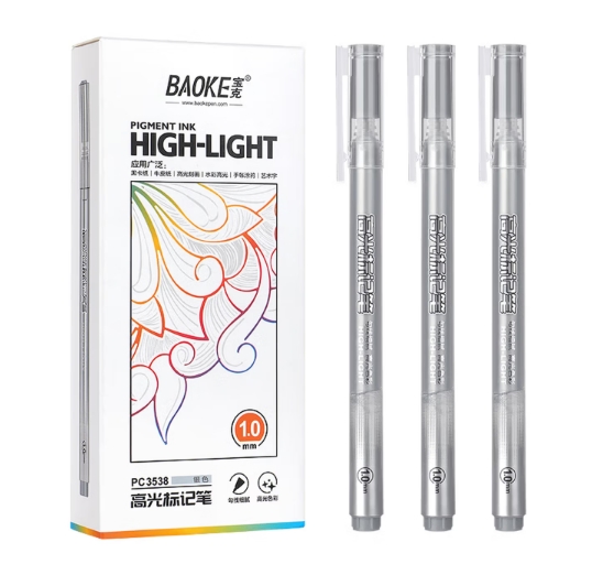 宝克(BAOKE)PC3538 银色高光笔1.0mm中性笔标记笔手账手绘笔水性笔签字笔 12支/盒
