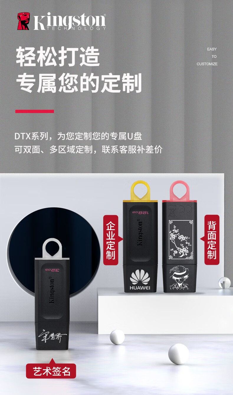 商品名称:金士顿(Kingston) u盘 商务办公U盘 定制刻字 高速USB3.2 DTX 投标车载优盘 64G U盘加密防复制 商品编号:231493 品牌:金士顿 上架时间:2026-01-14 商品毛重:0克