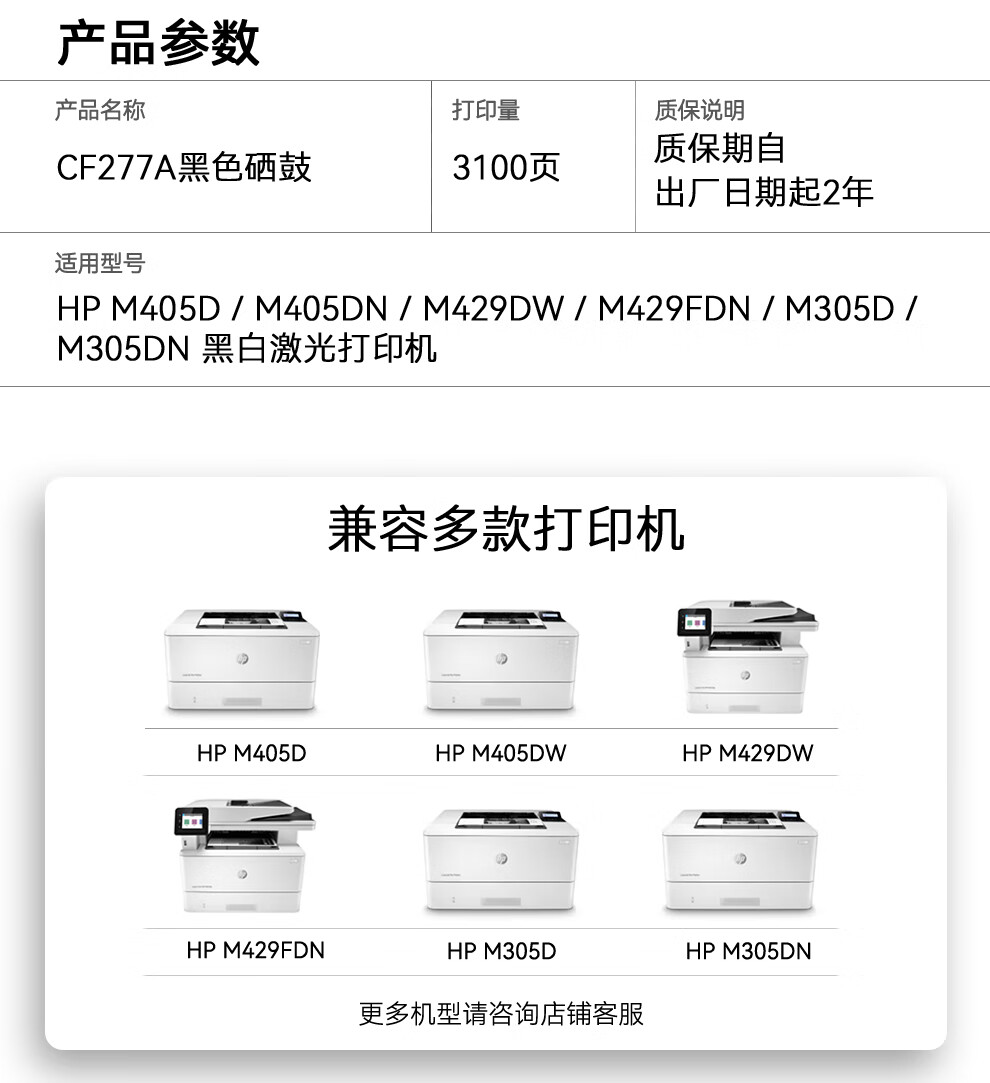 商品名称:KILter智通 cf277a硒鼓 适用于惠普m329dw硒鼓 405d m429dw硒鼓 m305d 329dn 405dw m429fdw打印机硒鼓 277a带芯片 商品编号:231572 品牌:智通 上架时间:2026-01-26 商品毛重:0克