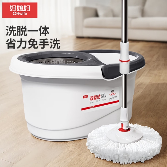 好媳妇(okaywife)AGW-3596 38cm双排大滚轮吸水胶棉拖把 超大号 红色