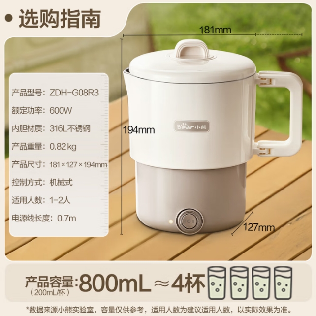 商品名称:小熊(Bear)便携式烧水杯 旅行电热水壶0.8L ZDH-G08R3