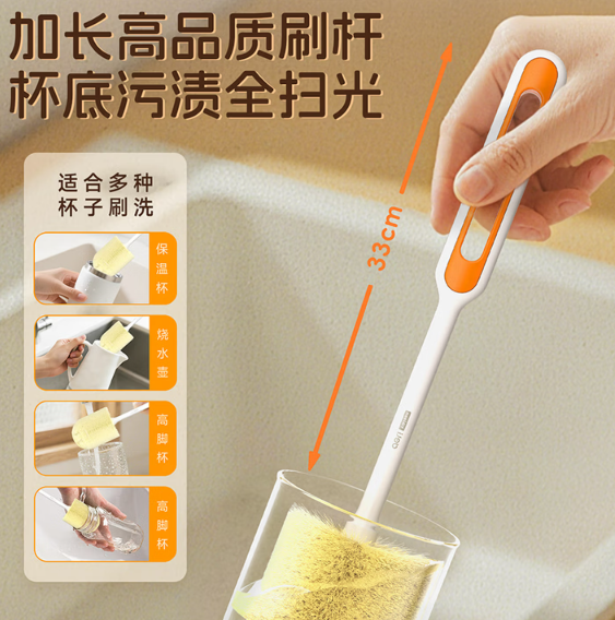 得力(deli)长柄洗杯刷 厨房水杯破壁机专用无死角缝隙刷玻璃杯刷刷杯子神器