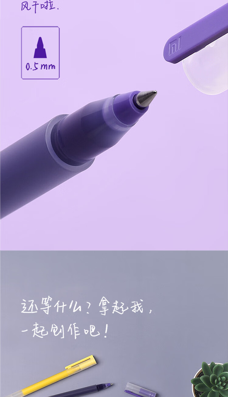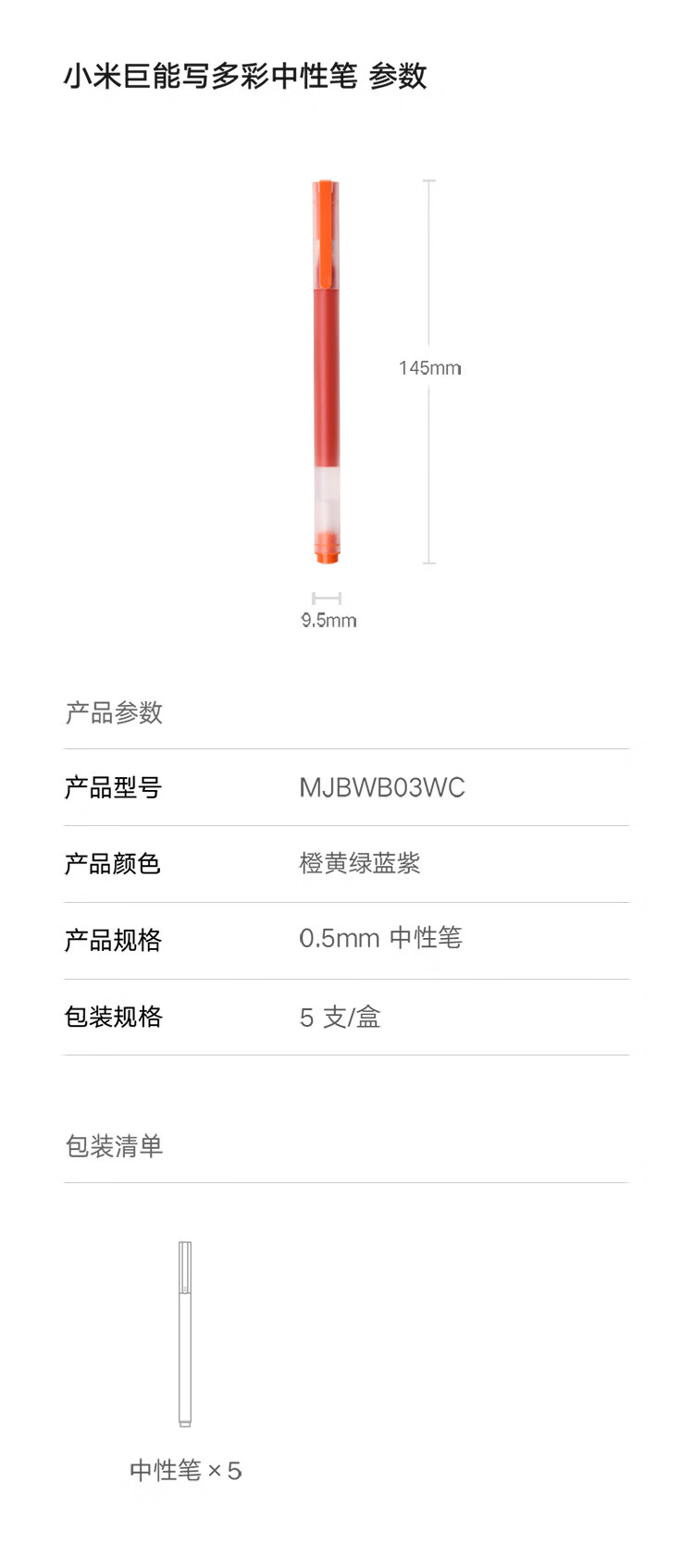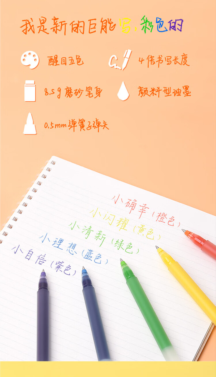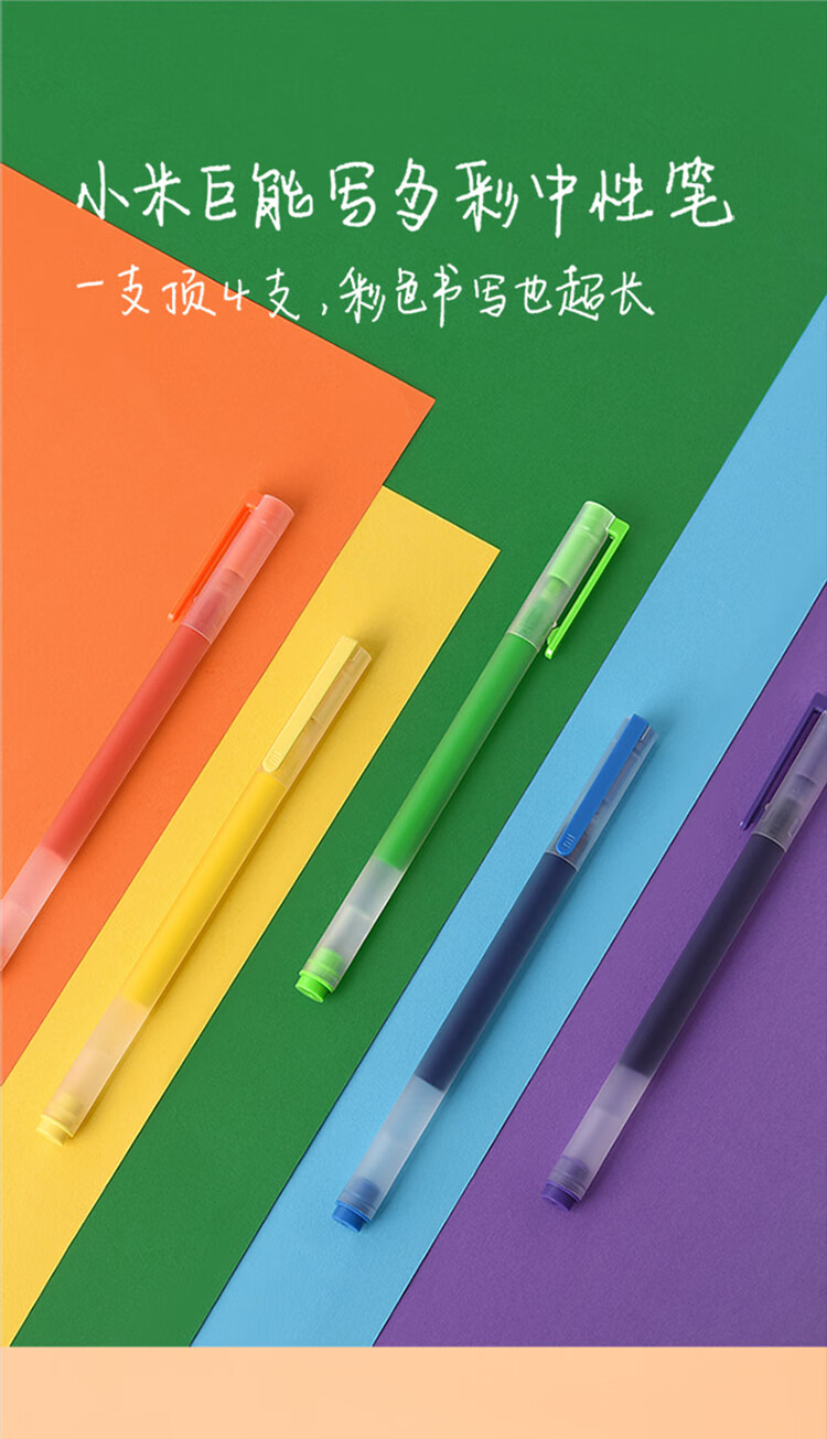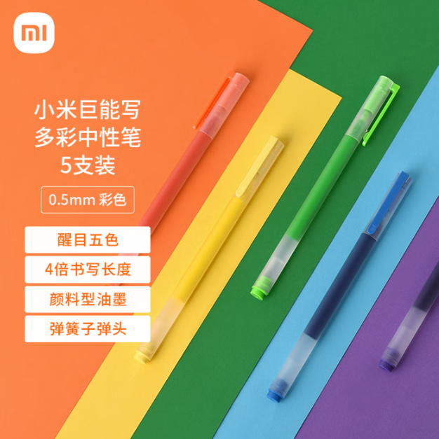 商品名称:小米巨能写多彩中性笔 5支装 0.5mm 商务办公中性笔会议笔 橙黄绿蓝紫