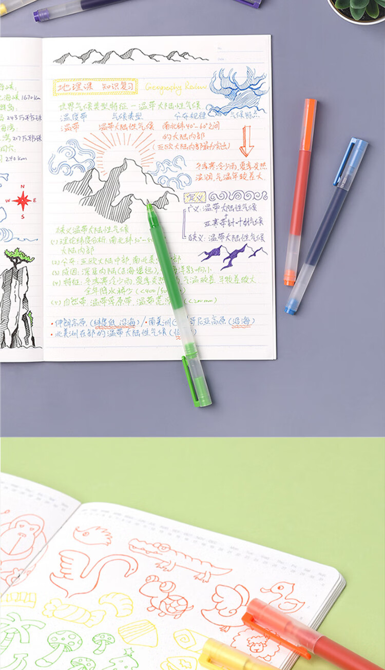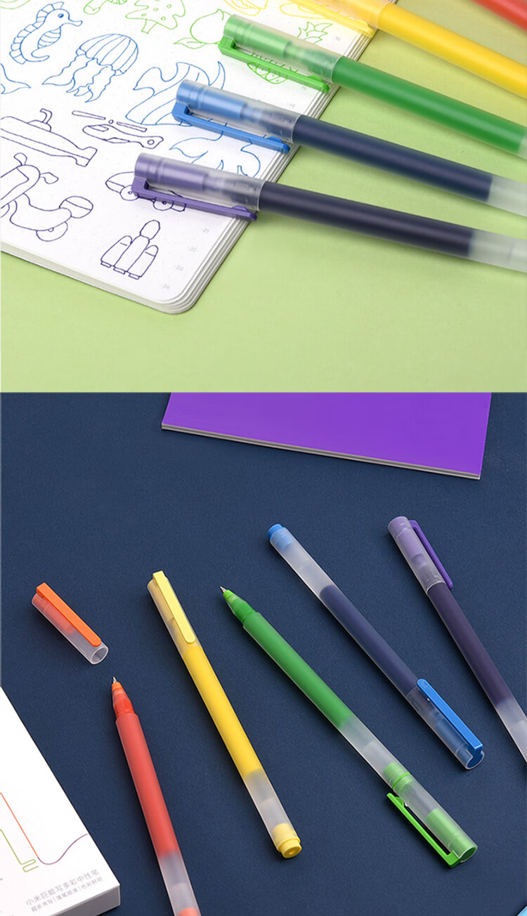 小米巨能写多彩中性笔 5支装 0.5mm 商务办公中性笔会议笔 橙黄绿蓝紫