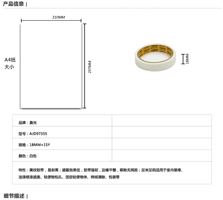 商品名称:晨光美纹胶带18mm*15y AJD97355 商品编号:072396 品牌:晨光 上架时间:2019-04-01 商品毛重:0克