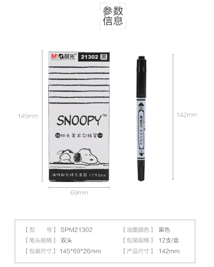 商品名称:晨光黑色双头史努比海洋风记号笔SPM21302C 商品编号:0723931 品牌:晨光 上架时间:2019-04-01 商品毛重:0克