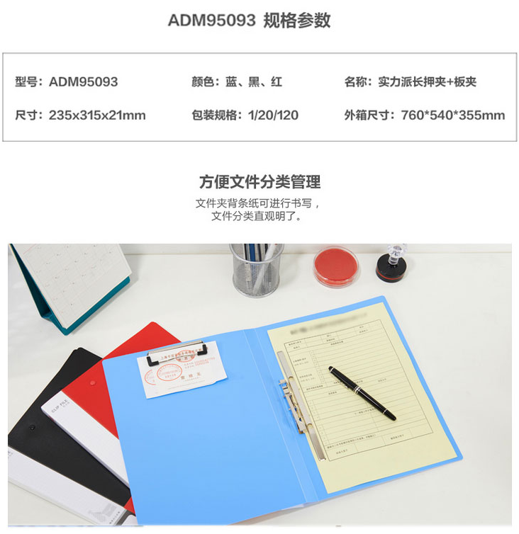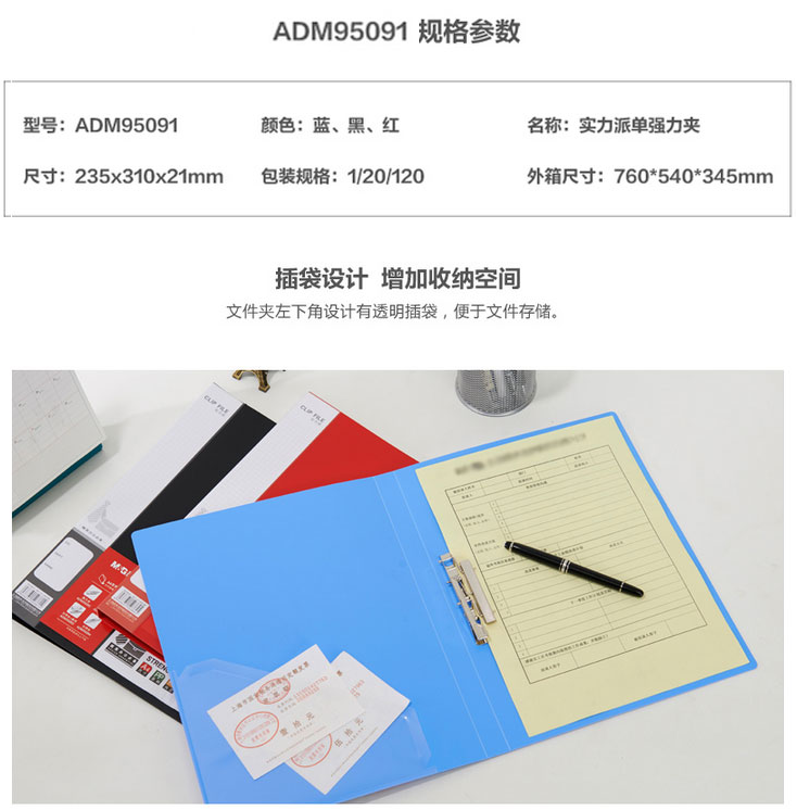 - 商品名称:晨光(M&G)ADM95088 A4新锐双强力文件夹(蓝/黑)