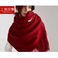 上海故事仿羊绒围巾女冬季女士围巾披肩两用围脖 年会团购定制红围巾189050 酒红色