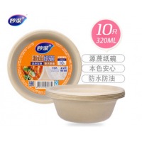 妙洁一次性碗 纸碗饭盘餐具厨房用品烧烤碟 320ML10只装