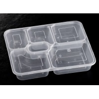 Edo 一次性饭盒长方形5格餐盒 1000ml透明大五格带盖餐盒 打包便当塑料快餐盒分格装