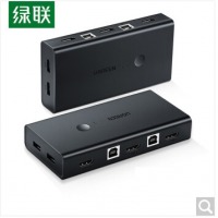 绿联 UGREEN 30345 USB打印机共享器分线器一分二 二进一出切换器 电脑接鼠标